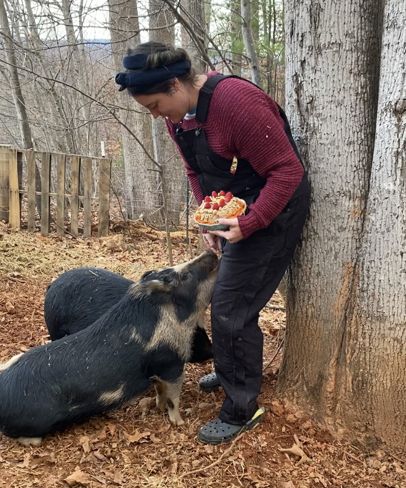 One way we celebrated was by making them a pig friendly birthday cake. Since some of our readers are fellow pig parents, we thought we’d share the recipe with you all too!